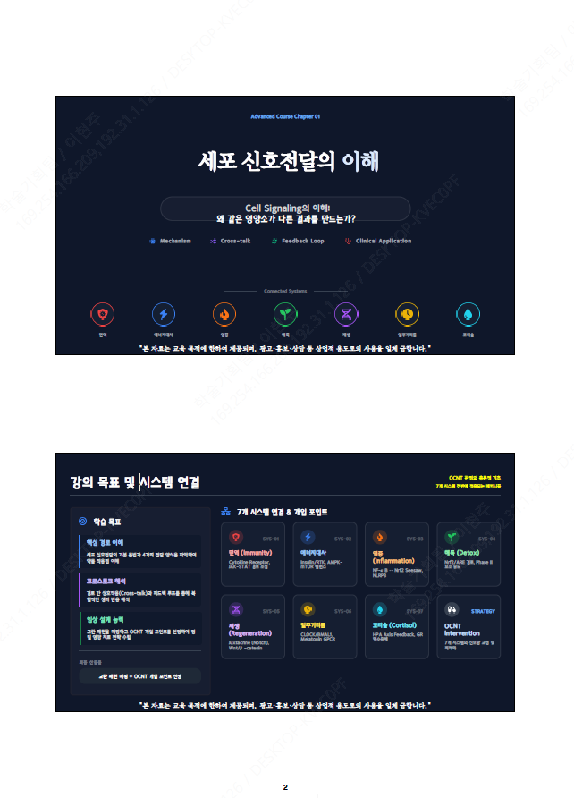 e-college 4학기는 세포 신호전달과 줄기세포·성장인자 등 최신 생리학 기반 위에, 자가면역·여성/남성 질환·신경내분비·신장·암·갑상선까지 임상에서 자주 마주치는 주제를 병태생리로 정교하게 정리합니다. 여기에 OCNT와 항상성, ECM(세포외기질) 관점의 영양소 적용, 폴리펩타이드 기반 조직재생까지 이어지며, ‘왜 이런 증상이 생겼는지’에서 ‘무엇을 어떻게 적용할지’까지 한 권으로 연결해드립니다.